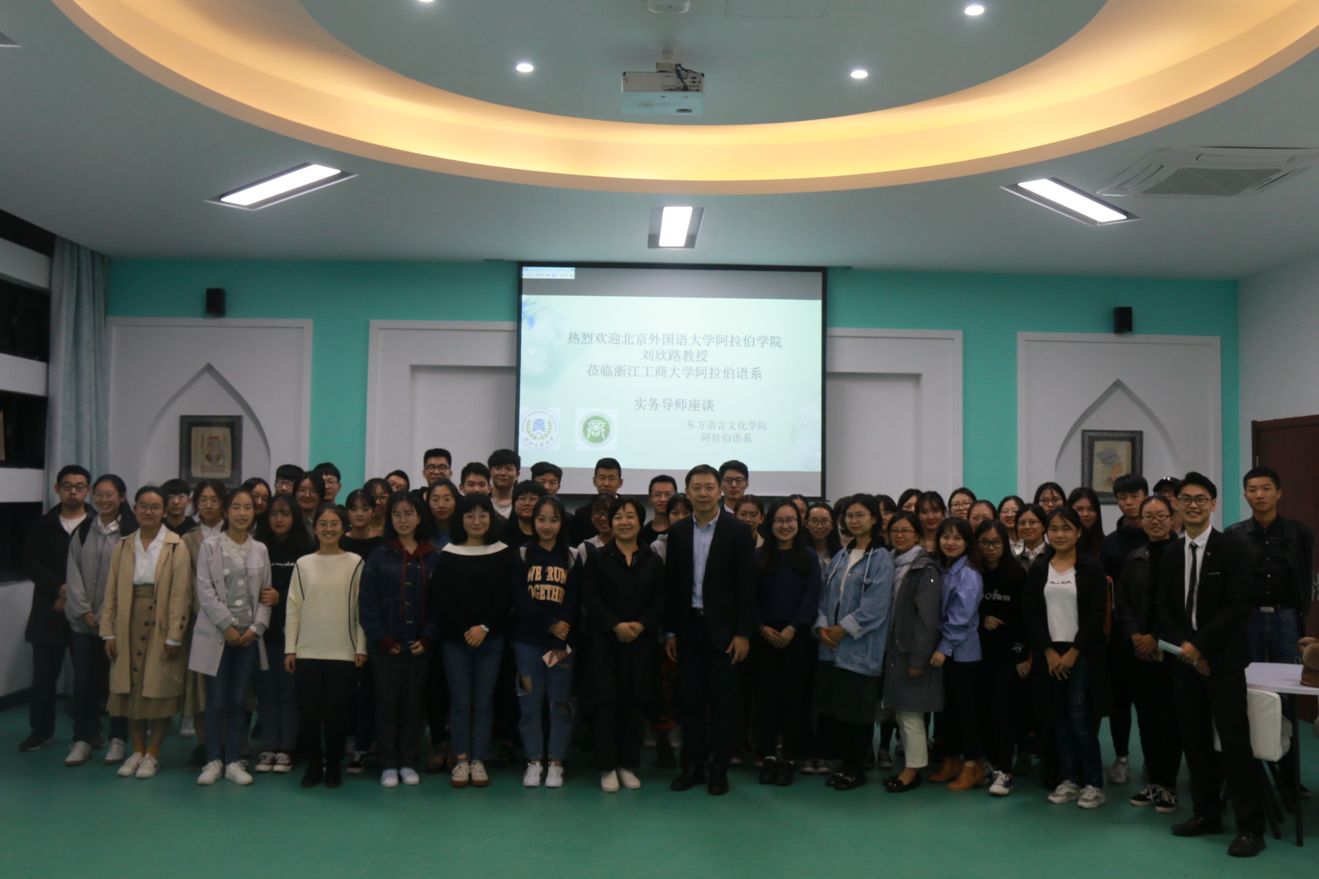 讲座的最后,刘教授对我们说,要学好阿拉伯语,没有学六七十分之说,只有能用和不能用。并向我们提出了三点希望:精通阿拉伯语、掌握英语以及在大学期间读一百本书。