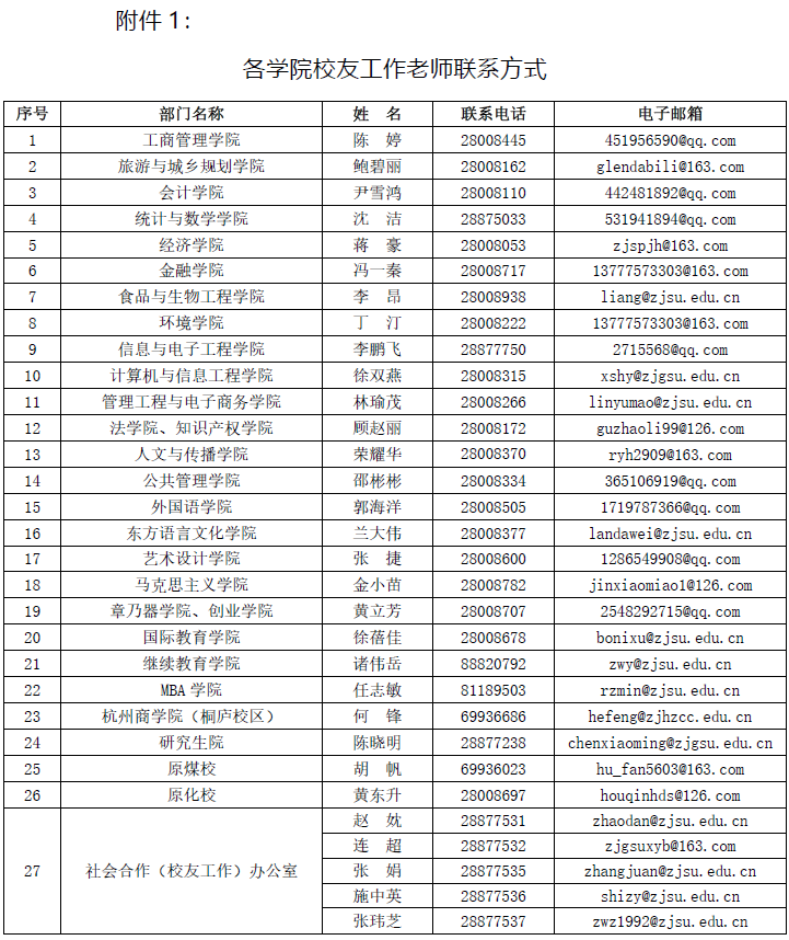 各学院校友工作老师联系方式(附件1)