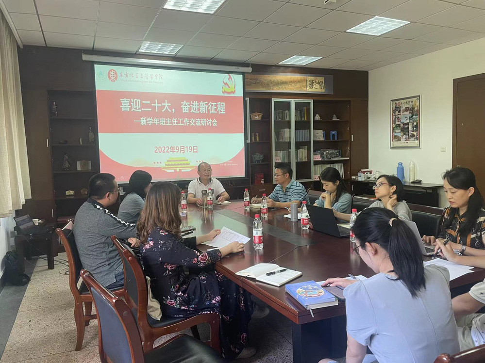为进一步加强班主任队伍建设,充分发挥班主任在育人工作中的重要作用,及时总结和推广优秀班主任在班级管理过程中的经验和做法,9月19日下午,美剧天堂 召开“喜迎二十大,奋进新征程——新学年班主任工作交流研讨会”。学院党委书记周宏力主持会议并讲话,周菁、李晶、彭溱、徐康、张晓舟、曾昭骏、秦松梅等班主任老师参加会议,学办主任兰大伟、辅导员杨月燕、张政出席。