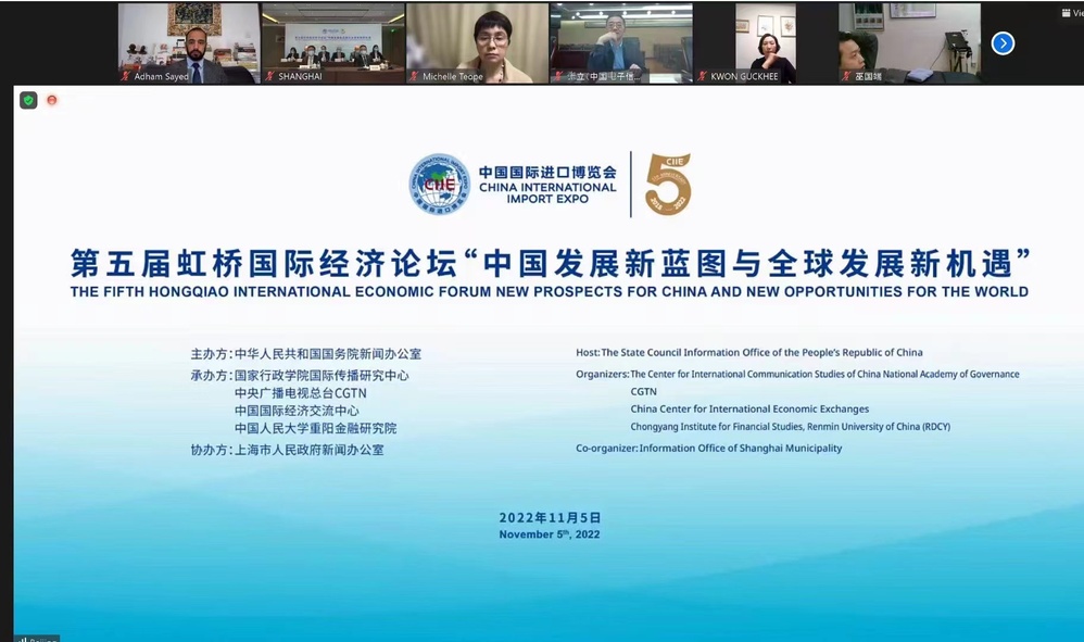 据悉,虹桥国际经济论坛作为中国国际进口博览会的重要组成部分,由商务部和上海市政府联合主办,在世界各国经济交往中发挥了重要作用。本届论坛以“百年变局下的世界经济:后疫情时代全球经济合作”为主题,举办了主论坛和多场分论坛。论坛聚焦构建新发展格局和全球经济治理,高举多边主义旗帜,坚定支持多边合作,发挥“会”与“展”的“左右手”协同促进作用,打造世界级高水平论坛,为推动建设开放型世界经济、构建人类命运共同体贡献“虹桥智慧”。