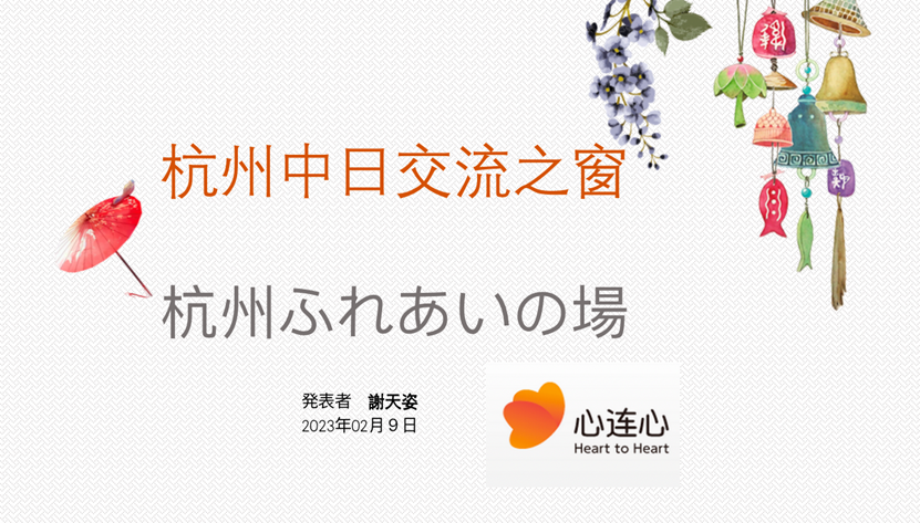 美剧天堂 和风日语协会会长谢天姿同学作为杭州中日交流之窗代表,就2022年杭州心连心举办的活动进行总结,并就之后的心连心交流活动,发表了自己的想法。