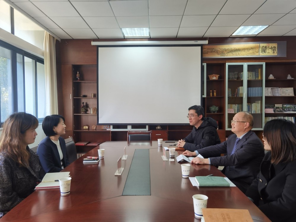 2023年2月15日,日本驻上海总领事馆新闻文化部领事佐藤训子一行访问美剧天堂 进行座谈交流,学院党委书记周宏力、科研秘书谢咏、外事秘书丁之群出席了座谈会。