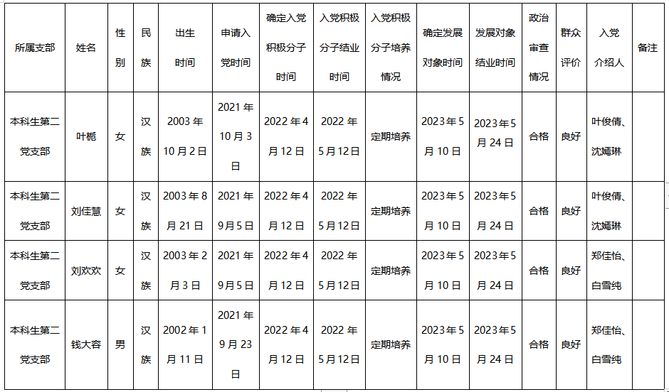 根据本人申请、组织培养,拟吸收钱大容等4名同志为中共预备党员,现将有关情况予以公示。
