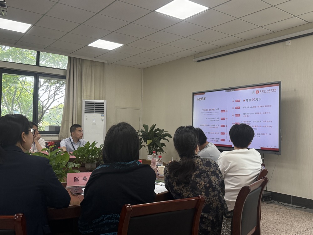 随后,评估专家组反馈评估意见。专家组认为,学院立足新文科建设背景,依托语言与哲学学科交叉优势,在复合型人才培养、国际化办学等方面形成特色,领导班子对评估工作高度重视,自评报告问题梳理客观,整改方向明确。同时,专家组从学科交叉与人才培养、教学资源与师资建设、实践教学与就业支持、质量保障与特色发展等方面提出了建设性意见和建议。
